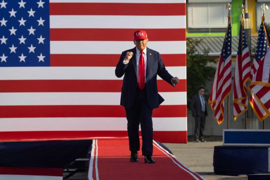 도널드 트럼프 미국 대통령이 3일 아이오와 주립 박람회장에서 열린 독립기념일 전야제 집회에 입장하고 있다. /AFP 연합뉴스 |