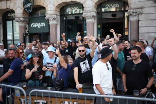 공연장 앞 펍에서 오아시스의 공연을 기다리는 팬들. EPA=연합뉴스