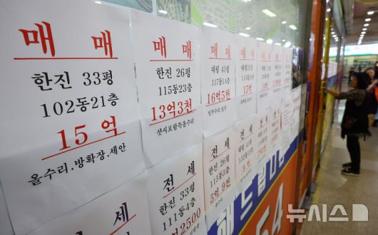 [서울=뉴시스] 황준선 기자 = 26일 서울 성동구의 한 부동산에 아파트 매물 광고가 게시돼 있다. 2025.06.26. hwang@newsis.com |