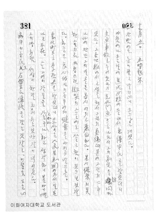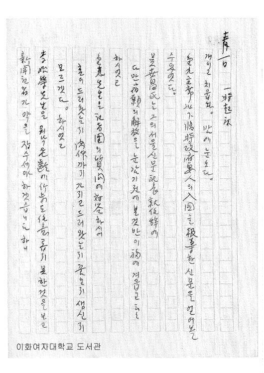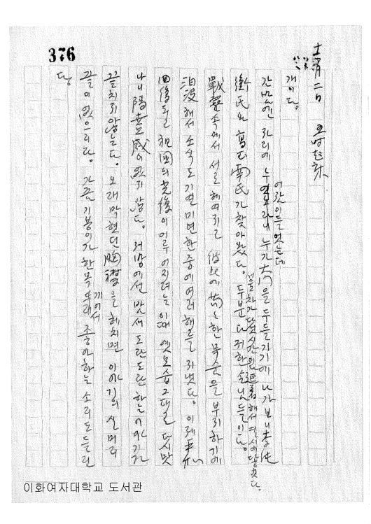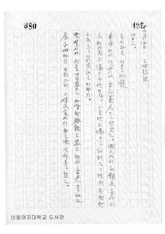 간밤엔 자리에 누워 잠이 들었는데 누가 대문을 두들기기에 나가보니 이순형(李純衡) 씨와 고옥남(高玉南) 씨가 찾아왔다. 서울 차가 다섯 시간이나 연착해서 열 시에 닿았다. 두 분 다 귀한 손님들이다. 전진(戰塵) 속에서 서로 헤어지고 피차에 구구한 목숨을 부지하기에 골몰해서 소식도 기연미연(其然未然)한 중에 여러 해를 지냈다. 이제 평화 회복되고 조국의 광복이 이루어지려는 이때 옛 모습 그대로 다시 만나니 격세지감이 없지 않다. 저 방에선 밤새 도란도란하는 이야기가 그치지 않는다. 오래 막혔던 흉금을 헤치면 이야기의 실마리 끝이 없으리라. 가끔 기봉이가 한몫 끼어서 좋아하는 소리도 들린다. [해설: 이순형은 필자의 막내 자형이고 고옥남은 이남덕과 함께 이화여전에서 경성제대로 진학해 영문학을 전공한 동문이다.]