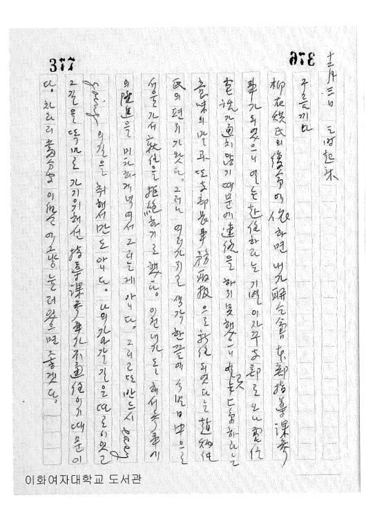 참사 김주인(金周仁) 군은 짐 가지러 시골 가서 아직 오지 않았고 서기가 두 분. 한 분은 나이 많은 분으로 세상의 풍파를 많이 겪은 이인 것 같고 한 분은 제주도 출신이라는 젊고 팽팽한 이다. 저번 직원들의 스트라이크도 이분이 중심이었고, 그 후도 출근은 하나 태업(怠業) 중이라고 여러 방면으로부터 특별히 주의하라는 경고가 많다. 그럴수록 나는 이 청년을 살려서 써보았으면 하는 의욕이 움직인다. 기회 보아서 정리해버리라는 동료의 고마운 충고에도 그저 웃고 말았다.