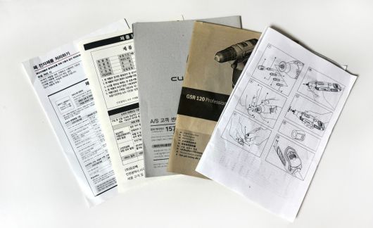 우리집 책장에는 제품 설명서를 모으는 파일첩이 있다. 청소기, 여행 가방, 정수기, 전기포트 등 일상적으로 사용하는 제품의 설명서부터 헤드폰과 스피커, 게임기 같은 취미용품의 설명서까지 차곡차곡 보관돼 있다. 설명서의 형태와 두께는 정보의 양에 따라 제각각이다. 어떤 것은 인쇄된 종이 한 장을 간단히 잡은 리플릿 형태이지만, 페이지가 많아서 스테이플러로 엮은 책자 형태의 설명서도 꽤 있다. 두꺼운 설명서의 경우, 사용자가 필요한 내용을 빠르게 펼쳐볼 수 있도록 표지에 목차를 기입한다. 기본으로 들어가는 항목은 ‘제품의 특징’ ‘안전을 위한 주의사항’ ‘기능 및 사용방법’ 등이다. 조립이나 설치가 필요한 제품은 상세한 그림 설명을 넣는다. 손수 조립하거나 설치하지 않더라도 그림을 자세히 보아두면 도움이 된다. 주요 부분의 고장이 아니라면, 느슨해진 나사를 조인다거나 부품 일부를 교체하는 정도로 간단히 문제가 해결되는 예도 있기 때문이다.