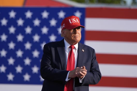 도널드 트럼프 미국 대통령이 지난 3일(현지시간) 아이오와주 디모인에 있는 아이오와 주립 박람회장에서 연설을 앞두고 있는 모습. [AP] |