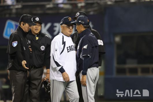 이에 앞서 5월28일 잠실 한화 이글스-LG 트윈스 경기에서도 김경문 한화 감독이 체크스윙 결과에 항의하는 모습을 볼 수 있었다.