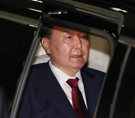 <잠시 귀가> 지난 28일 내란 특검팀에 출석해 조사를 받은 윤석열 전 대통령이 20일 새벽 특검팀이 입주한 서울 서초구 서울고검 청사에서 나와 차량에 탑승해 있다. 연합뉴스 |