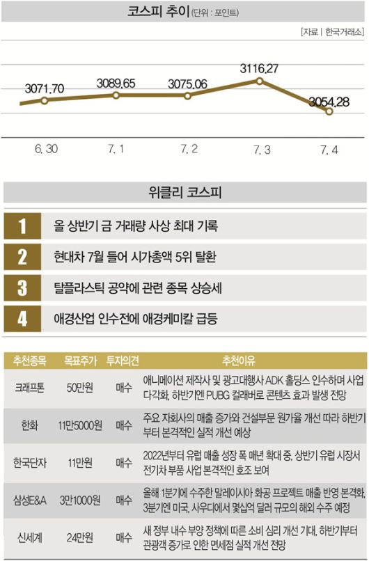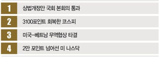 # 국내 증시가 급등과 급락을 거듭했다. 지난 3일엔 가파른 상승세를 기록했다. 코스피지수는 전 거래일 대비 1.34% 상승한 3116.25포인트로 장을 마감했다. 지난 6월 25일(3079.56포인트) 이후 7거래일 만에 3100포인트대를 제탈환했다. 더불어 종가 기준 연중 최고치를 경신했다. 상법개정안이 국회 본회의를 통과했다는 소식이 지수 상승세를 이끌었다. 코스닥지수도 790포인트대를 회복했다.