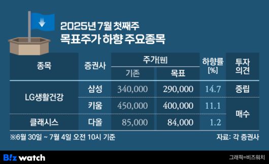 한주간 증권가 목표주가 상향·하향 종목 리뷰