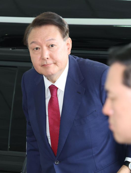 윤석열 전 대통령이 5일 오전 서울 서초구 서울고등검찰청에 마련된 내란 특검 사무실로 출석하고 있다. (공동취재) |