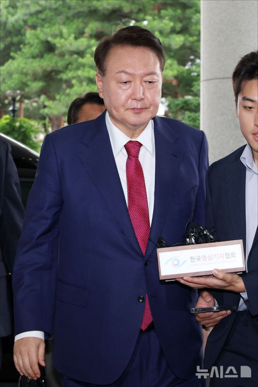 [서울=뉴시스] 배훈식 기자 = 윤석열 전 대통령이 5일 오전 서초구 서울고등검찰청에 마련된 내란특검에서 2차 대면조사를 받기 위해 출석하며 취재진의 질문에는 입을 닫고 있다. (공동취재) 2025.07.05. photo@newsis.com