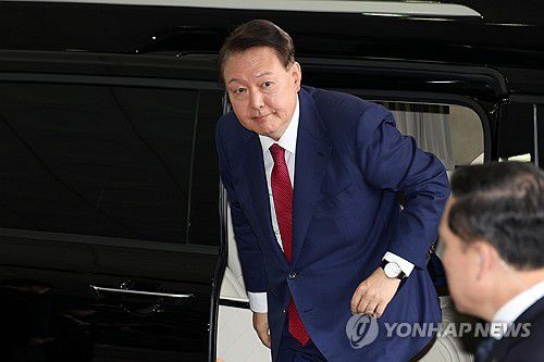 (서울=연합뉴스) 김도훈 기자 = 윤석열 전 대통령이 5일 내란 특검의 2차 조사를 받기 위해 조은석 특별검사팀 사무실이 있는 서울 서초구 서울고검에 출석하고 있다. 2025.7.5 [공동취재]