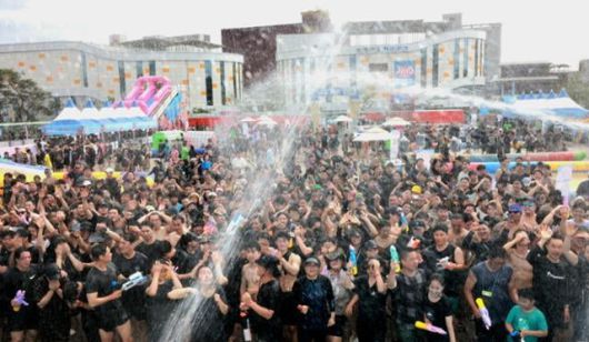 2024 보령 머드축제 ‘머드흠뻑존’ 참가자들이 온몸에 머드를 바른 후 물대포를 맞으며 즐거워하고 있다 / 사진=보령시 |