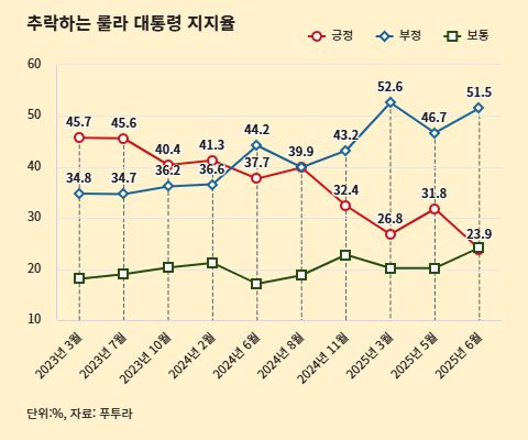 한때 ‘세계에서 가장 인기 있는 대통령’으로 불렸던 남미 좌파의 아이콘. 누구인지 아시겠나요. 룰라 다 시우바 브라질 대통령인데요. 2023년 재집권에 성공한 룰라 대통령의 인기가 최근 바닥을 치고 있습니다. 지지율은 고작 23%.