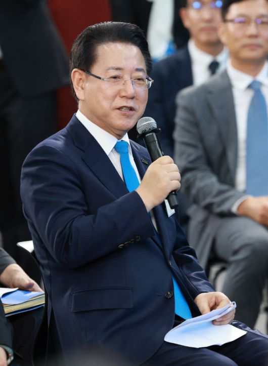 김영록 전남도지사가 지난달 25일 광주 국립 아시아문화전당에서 열린 이재명 대통령과의 광주시민, 전남도민 타운홀미팅에서 발언하고 있다. (사진=뉴시스) |
