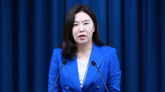 ▲ 강유정 대변인이 지난 4일 용산 대통령실에서 임명장 수여식 관련 브리핑을 하고 있다.