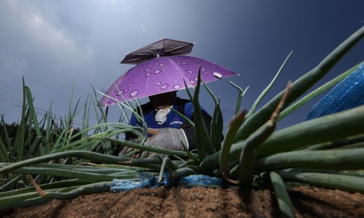 기사 이해를 돕기 위한 자료 사진. 폭염 속 한 농민이 밭일을 하고 있는 모습. 연합뉴스 |
