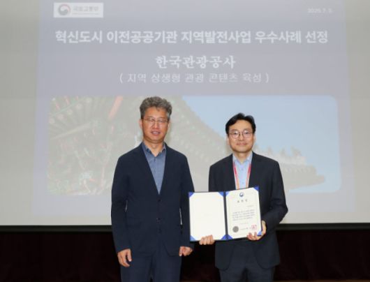 한국관광공사(사장직무대행 서영충)는 3일 공사 본사에서 열린 ‘2024 이전공공기관 지역발전사업 설명회’에서 지역발전 우수사례에 선정되어 국토교통부 장관상을 받았다.