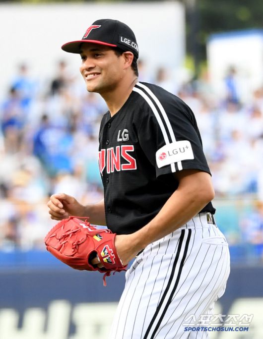5일 대구 라이온즈파크에서 열린 삼성 라이온즈와 LG 트윈스의 경기. LG 치리노스가 주심에게 인사를 하고 있다. 대구=박재만 기자 pjm@sportschosun.com/2025.07.05/