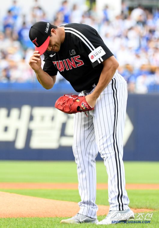 5일 대구 라이온즈파크에서 열린 삼성 라이온즈와 LG 트윈스의 경기. LG 치리노스가 주심에게 인사를 하고 있다. 대구=박재만 기자 pjm@sportschosun.com/2025.07.05/