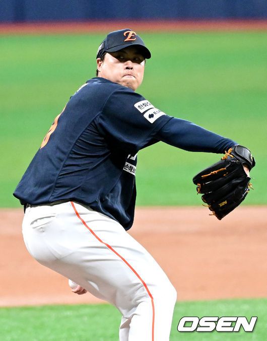 [OSEN=고척, 최규한 기자] 5일 서울 고척스카이돔에서 ‘2025 신한 SOL Bank KBO리그’ 키움 히어로즈와 한화 이글스의 경기가 열렸다. 홈팀 키움은 라클란 웰스, 방문팀 한화는 류현진을 선발로 내세웠다. 1회말 한화 선발 류현진이 힘차게 공을 뿌리고 있다. 2025.07.05 / dreamer@osen.co.kr