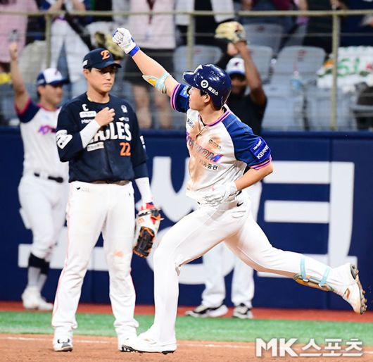 8회말 2사에서 키움 어준서가 4-4 동점을 만드는 동점 솔로홈런을 치고 그라운드를 돌고 있다.
