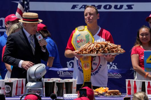 4일(현지시간) 미 CBS 뉴스에 따르면 체스트넛은 미국 독립기념일인 이날 뉴욕시 브루클린의 코니아일랜드 유원지에서 열린 네이선스 국제 핫도그 먹기대회에서 10분간 무려 핫도그 70.5개를 집어삼켜 46.5개를 먹은 전년도 우승자 패트릭 버톨레티(27)를 누르고 챔피언 밸트를 차지했다.