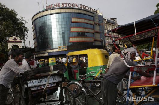 [뉴델리=AP/뉴시스] 인도 뉴델리에 있는 델리 증권거래소. 자료사진. 2025.07.05 |