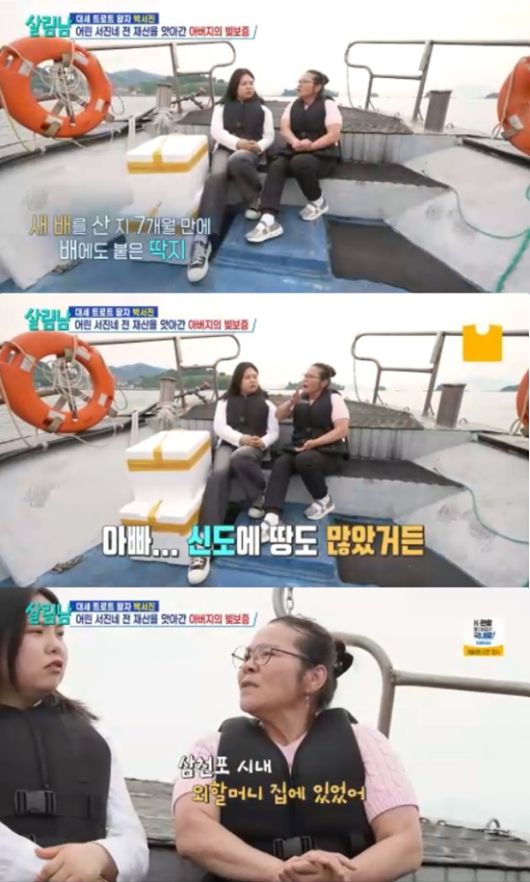 박서진 어머니는 "남의 빚 때문에 우리 재산이 넘어간 거다. 그때 당시 3천 3백만 원, 그거를 못 갚아서 다 넘어갔다"며 새로 산 배부터 신도 땅까지 압류대상이 됐다고 말했다.