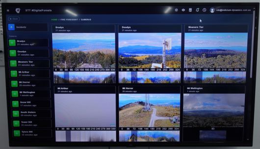 인디시움 다이나믹스의 산불 감시 카메라가 실시간으로 촬영하고 산림 지역이 본사 컴퓨터 화면으로 보이고 있다. |