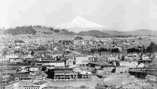 1843년 어느 봄날 미국 서부 오리건. 아직 지도에도 제대로 표시되지 않은 땅 위에 두 명의 사내가 발을 디뎠다. 한 사람은 매사추세츠주 보스턴에서 온 아사 러브조이, 다른 한 사람은 메인주의 해안 도시 포틀랜드에서 온 프랜시스 페티그로브. 둘 다 미 대륙의 서부 개척에 희망을 걸고 있던 인물들이었다 그들이 처음 만난 곳은 윌래밋 강과 컬럼비아 강이 만나는 지역으로 오늘날의 포틀랜드 시내 한복판이었다.1850년대 포틀랜드 |