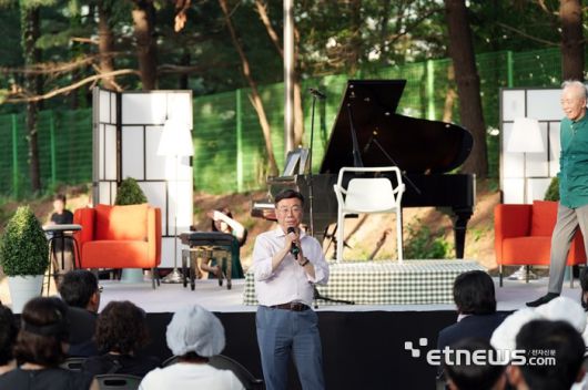신상진 경기 성남시장이 5일 오후 성남물빛정원 산책로 야외무대에서 열린 '금난새의 한여름밤 콘서트'에 참석해 시민들과 함께 첫 번째 시민 초청 음악회를 관람했다.