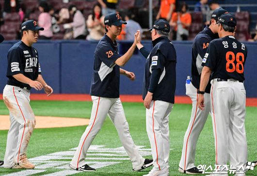 한승혁은 9회말 선두타자 임지열에 좌전 안타, 2사 후 스톤에 볼넷을 내주면서 1, 2루 위기에 몰리기도 했지만 무너지지 않았다. 이주형을 유격수 뜬공으로 솎아 내고 한화의 2점 차 리드와 승리를 지켜냈다.