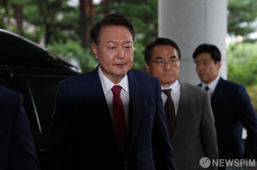 [서울=뉴스핌] 최지환 기자 = 윤석열 전 대통령이 5일 오전 서울 서초구 서울고검 청사에 마련된 '내란 특검' 사무실에 피의자 신분으로 출석하고 있다. 2025.07.05 choipix16@newspim.com |
