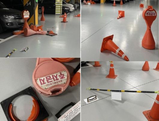 공개된 사진에는 ‘주차금지 표지판’ 등이 부서진 채 어질러져 있는 모습이 담겨 있었다.