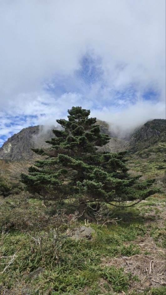 한라산 남벽분기점 돈내코 코스 해발 1600m에 자라고 있는 한라산 구상나무 대표목. 제주도세계유산본부 제공 |