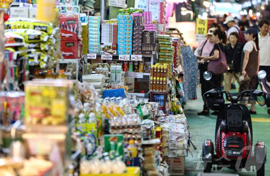 4일 서울 마포구 망원시장에서 시민들이 장을 보고 있다. 2025.7.4/뉴스1 ⓒ News1 김도우 기자 |