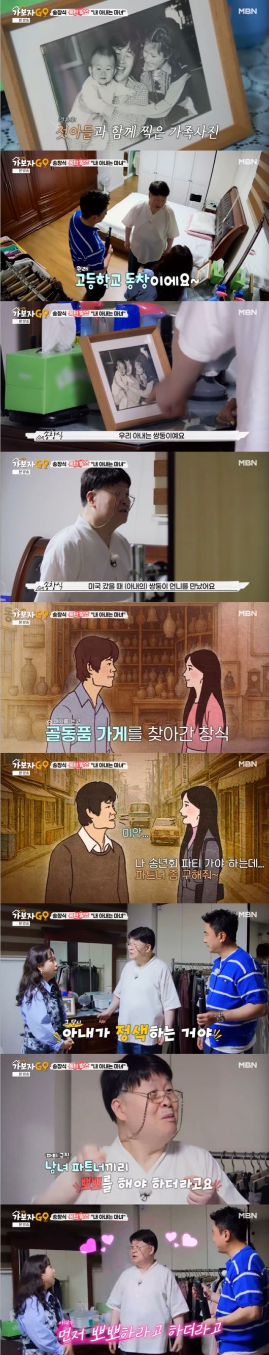 송창식은 첫 만남에 대해 "원래 고등학교 동창이다. 우리 아내는 쌍둥이다. 고등학교 졸업하고 쭉 못 보다가 미국 갔을 때 (아내의) 쌍둥이 언니를 만났다. 동생은 뭐하냐 했더니 골동품 장사를 한다고 하더라. (한국에서) 골동품 가게를 찾아갔다"라고 이야기했다.