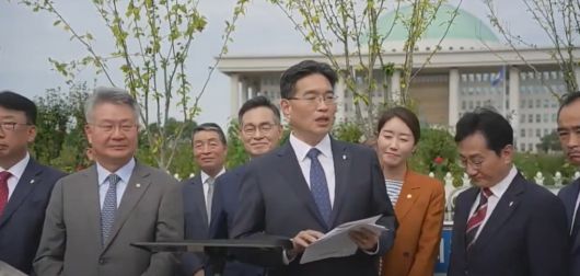 강선우 여성가족부 후보자가 2023년 9월 서울 여의도 국회의사당 앞에서 열린 대한예수교장로회총회 108회기 총회 임원회 시무식 기념촬영에 참여했다. 유튜브 마하나임뉴스 갈무리 |
