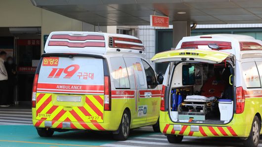 ▲ 22일 오전 서울 시내 한 상급종합병원 응급의료센터 앞에 환자를 이송한 구급차가 주차돼 있다.