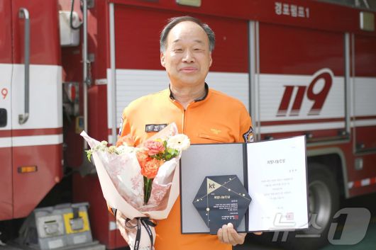 (서울=뉴스1) = KT그룹 희망나눔재단은 올해 두 번째 희망나눔인상에 공군 제15특수임무비행단과 김만하 소방관을 공동 선정했다고 6일 밝혔다. 사진은 KT희망나눔인상 공동 수상자 강릉소방서 김만하 소방관 모습. (KT 제공. 재판매 및 DB 금지) 2025.7.6/뉴스1