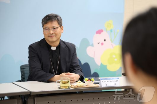 (서울=뉴스1) 박지혜 기자 = 정순택 천주교 서울대교구장 대주교가 4일 오후 서울 명동 천주교 서울대교구청에서 열린 미성년 미혼 한부모 초청 간담회에서 수혜자의 이야기를 경청하고 있다. 이번 행사는 교구와 우리금융그룹이 함께 진행하고 있는 ‘우리 원더패밀리’ 자립지원사업의 일환으로 마련됐으며, 가정 안팎의 어려움 속에서도 생명을 선택하고 자녀를 양육해 나가는 미성년 미혼 한부모 6명이 초청됐다. (천주교 서울대교구 제공. 재판매 및 DB 금지) 2025.7.4/뉴스1