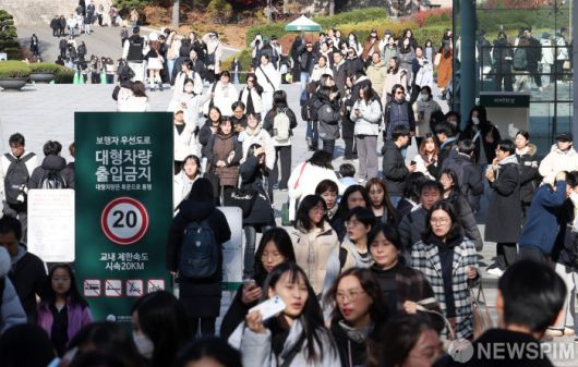 [서울=뉴스핌] 정일구 기자 = 2025학년도 수시모집 논술고사가 열린 23일 오후 서울 서대문구 이화여자대학교에서 시험을 마친 수험생들이 고사장을 나서고 있다. 2024.11.23 mironj19@newspim.com |