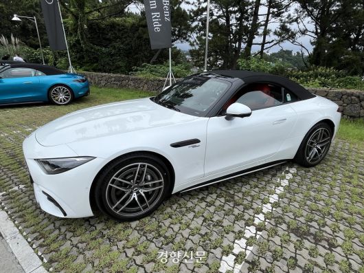 지난 6월 24일 열린 메르세데스-벤츠 코리아 주최 제주 시승 행사의 중간 기착지에서 숨을 고르고 있는 ‘메르세데스-AMG SL 43’. 권재현 선임기자 |