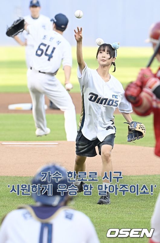 [OSEN=창원, 이석우 기자] 창원 출신 가수 한로로가 5일 창원NC파크에서 열린 2025 신한 SOL 뱅크 KBO 리그 NC 다이노스와 SSG 랜더스의 경기에서 NC 다이노스 승리 기원 시구를 했다. 가수 한로로는 최근 세계적인 밴드 콜드플레이(Coldplay) 내한공연 당시 오프닝 무대를 장식해 화제가 됐다. / foto0307@osen.co.kr