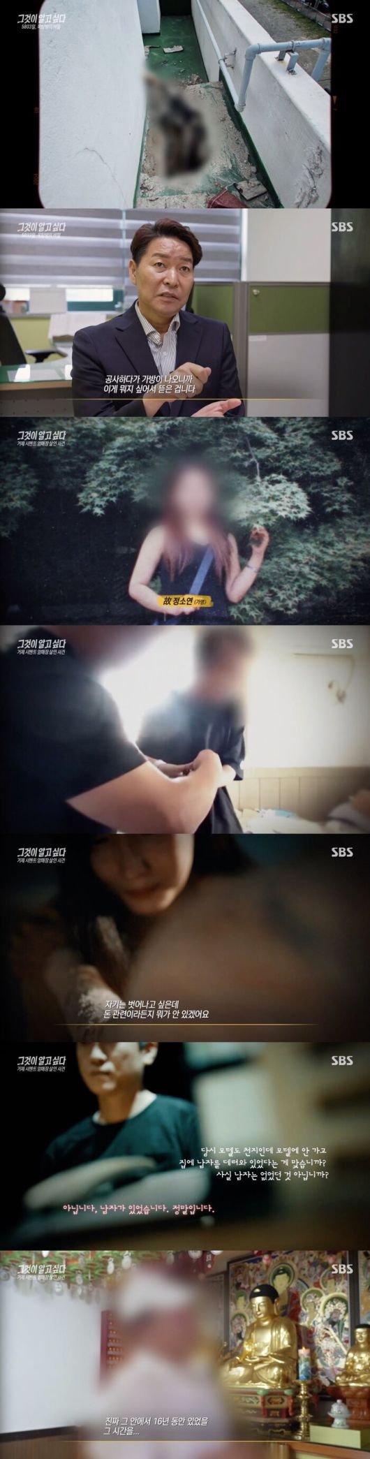 5일 방송된 SBS '그것이 알고 싶다'(이하 '그알')에서는 '5,803일, 옥탑방의 비밀 - 거제 시멘트 암매장 살인 사건'이라는 부제로 16년 만에 드러난 끔찍한 살인 사건을 추적했다.