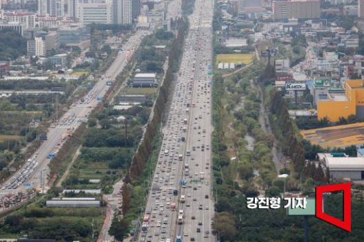 상공에서 바라본 경부고속도로 [항공촬영협조=서울경찰청 항공대, 조종사: 경위 신승호-경위 박지환, 승무원: 경위 박상진] 사진=강진형 기자aymsdream@ |