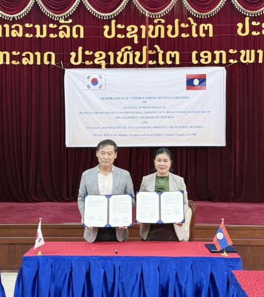 6일 군에 따르면 전춘성 군수는 이달 4일(현지시각) 동창옥 군의회 의장, 관계 공무원, 라오스 노동사회복지부 국장 및 실무진이 참석한 가운데, 라오스 정부와 외국인 계절근로자 도입을 위한 업무협약(MOU)이 체결됐다.