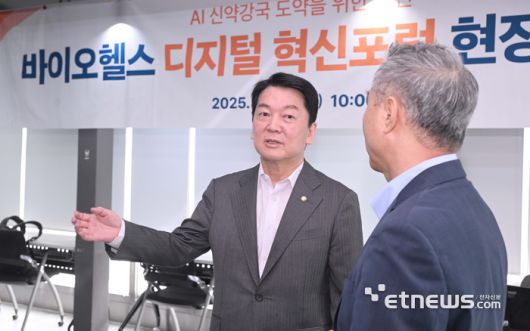 최수진 국민의힘 국회의원과 전자신문이 공동 주최한 '바이오헬스 디지털 혁신포럼 현장 간담회'가 24일 서울 송파구 비워크서울에서 열렸다. 안철수 국민의힘 의원이 참석자와 이야기를 나누고 있다. 박지호기자 jihopress@etnews.com |