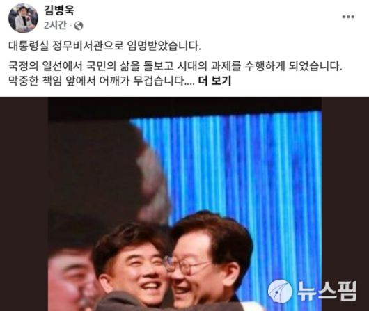 [서울=뉴스핌] 이영태 선임기자 = 이재명 정부 대통령실 정무비서관으로 임명된 김병욱 전 더불어민주당 의원은 6일 "반드시 이재명 정부가 성공해야 한다는 마음으로 일하겠다"고 다짐했다.