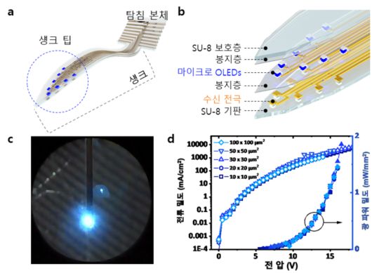 한국과학기술원(KAIST·총장 이광형)은 최경철·이현주 전기 및 전자공학부 교수팀이 유연 마이크로 유기발광다이오드(OLED)가 집적된 광유전학용 뉴럴 프로브 개발에 성공했다고 6일 밝혔다.