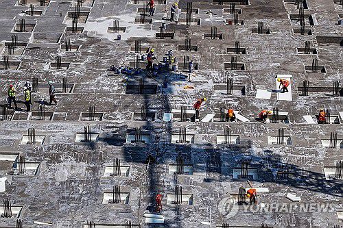 중국 동부 장쑤성 화이난의 주거 단지 건설 현장 |